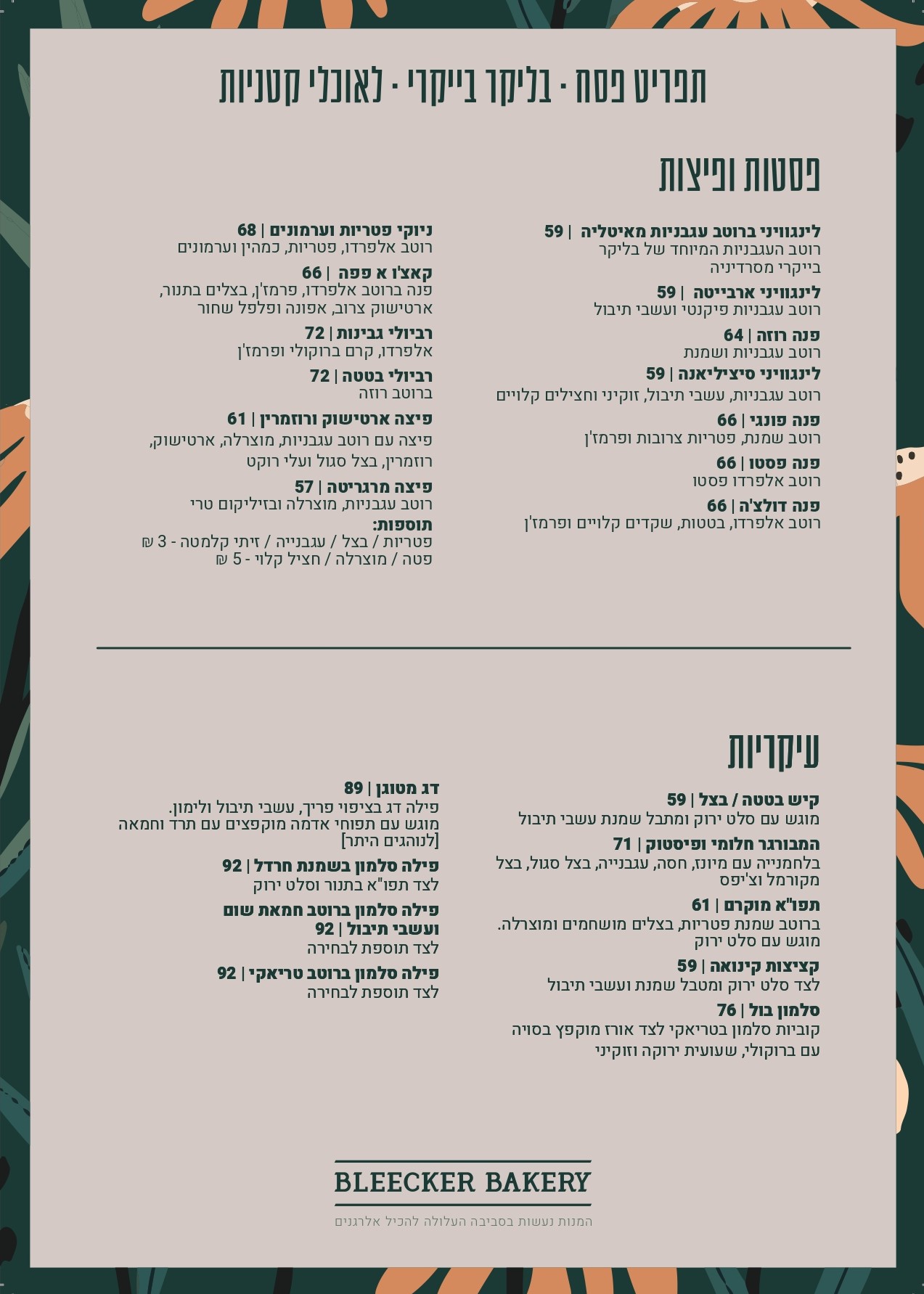 תפריט פסח 2023